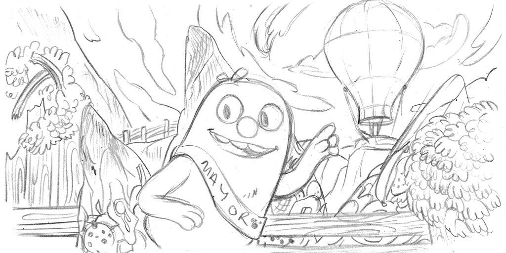 Bugsnax approach/emerge from Snaxburg