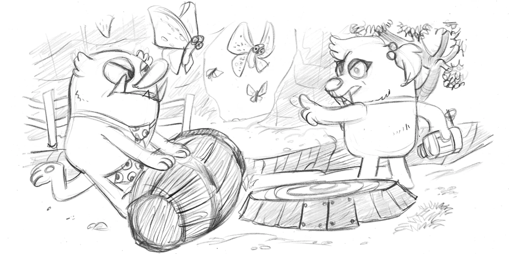 Wambus and Triffany are defending the farm. I need to clear a way through the Bugsnax with Wambus' special sauce.
